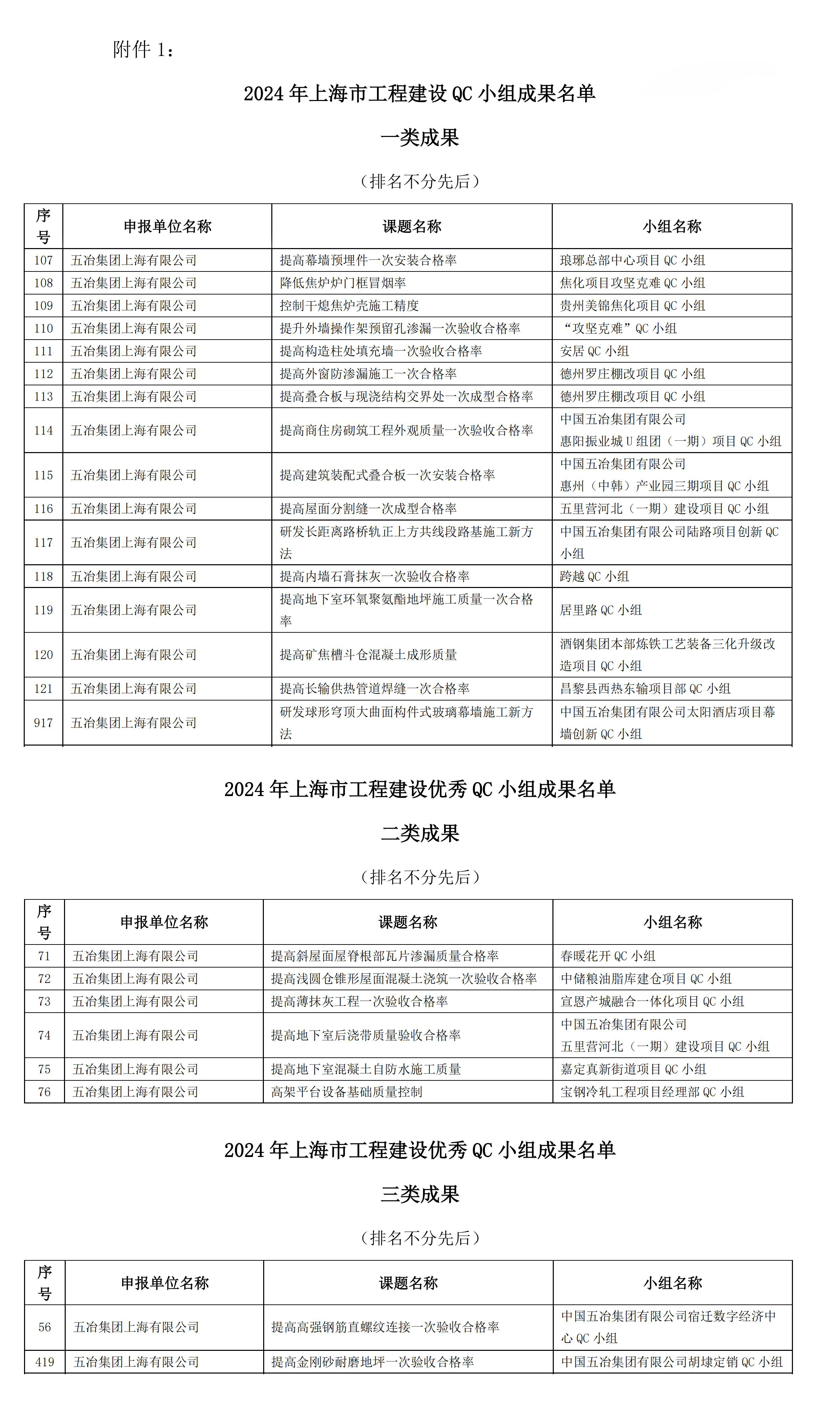 近日,上海市工程建設(shè)質(zhì)量管理協(xié)會公布了2024年工程建設(shè)QC小組活動成果大賽獲獎名單,公司申報的24項QC成果榜上有名,其中一等獎16項,獲獎數(shù)量創(chuàng)歷年新高。同時,公司榮獲“上海市工程建設(shè)QC小組活動優(yōu)秀企業(yè)”稱號。